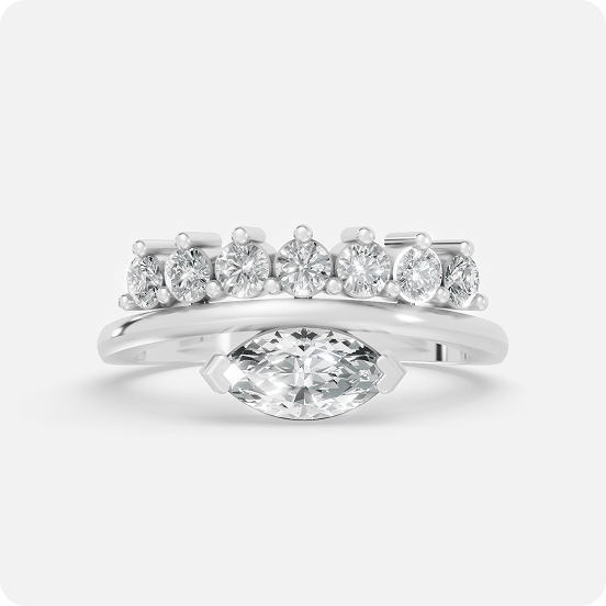 The Aureline Grace Diamond Ring is a contemporary expression of elegance and individuality. Designed with a striking offset centerpiece, this ring creates a fluid, modern silhouette that stands apart from traditional styles. A sequence of finely set diamonds flows along the band, adding balanced sparkle and refined brilliance.