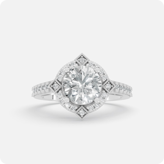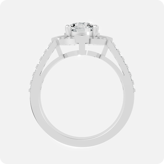 The Celestia Halo Diamond Ring is designed to reflect timeless luxury with a contemporary edge. A radiant center stone is beautifully framed by a fine diamond halo, while subtle geometric accents add depth and character. The diamond-lined band enhances brilliance, creating a refined yet striking statement ideal for modern elegance.