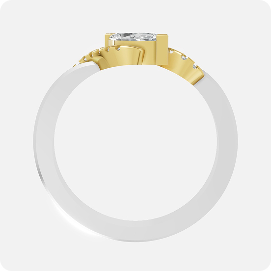 Finish: High-Mirror Polish on the smooth white gold shank and the yellow gold settings