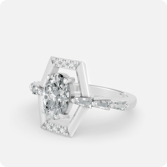 Hexa Frame Oval Diamond Engagement Ring