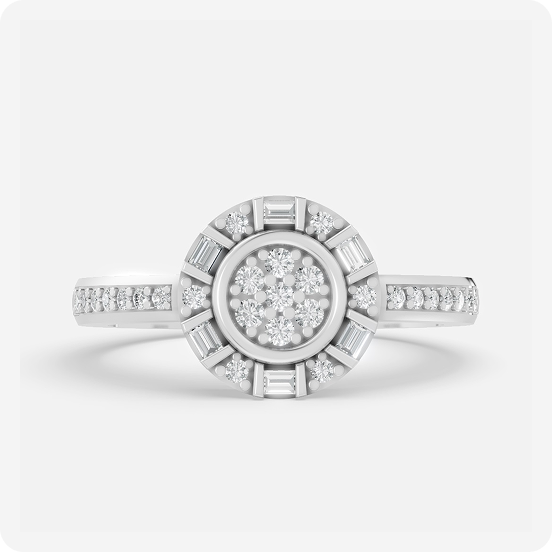 A stunning modern-classic ring designed with a perfect blend of round brilliant diamonds and elegant baguette diamonds.