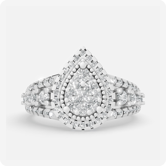 The Royal Pear Cluster Halo Diamond Ring is designed to deliver pure elegance and unmatched brilliance.