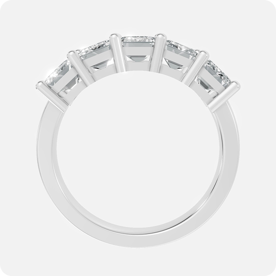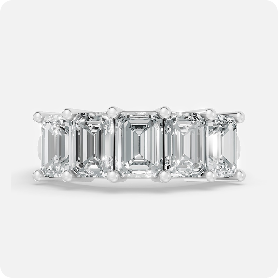Designed for the modern connoisseur, this signature band from Red Royal Jewelry celebrates the timeless allure of the emerald cut. Featuring five masterfully matched step-cut stones, the ring is engineered with a specialized shared-prong gallery that creates a seamless, architectural wall of light. The clean, elongated facets offer a sophisticated “hall of mirrors” effect, providing a refined and high-fashion alternative to traditional brilliant-cut bands.