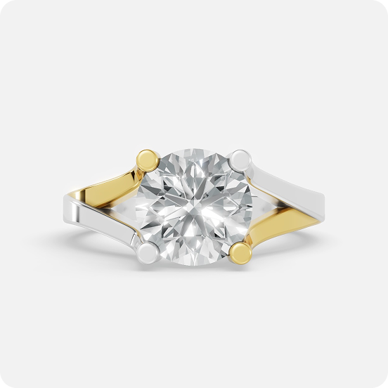 • Two-Tone Contrast: Available with a Yellow Gold head on a White Gold band to highlight the tulip-prong design.