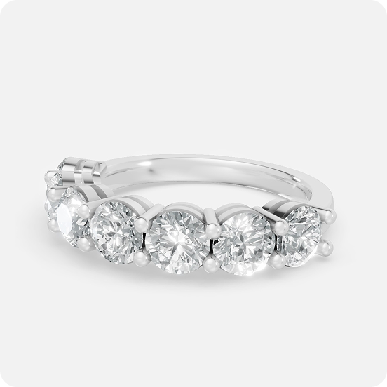 A monumental achievement in jewelry engineering, this signature band from Red Royal Jewelry features a prestigious linear arrangement of seven masterfully matched round brilliant-cut diamonds. This design utilize a sophisticated shared-prong architecture that allows the diamonds to sit in a continuous, edge-to-edge parade of fire across the finger. The increased stone count offers an expansive visual presence, bridging the gap between a standard anniversary band and a full eternity ring for the ultimate statement of luxury.