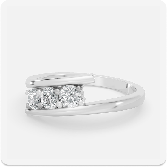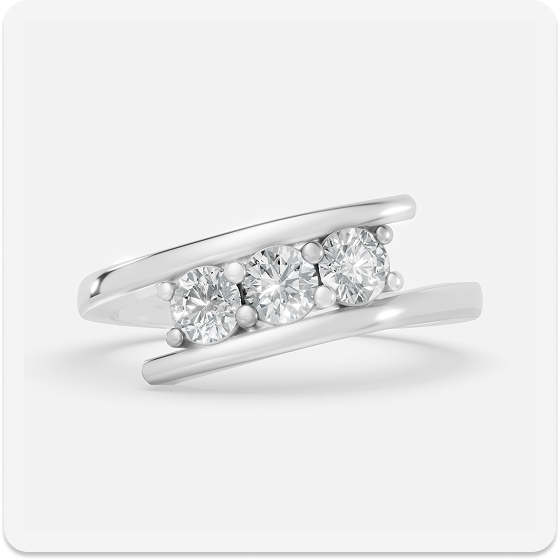 The split-band structure beautifully wraps around your finger, while the trio of high-clarity stones creates a radiant focal point.