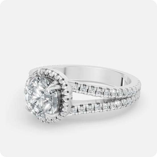 Construction: Cathedral-style shank that splits slightly as it meets the head of the ring